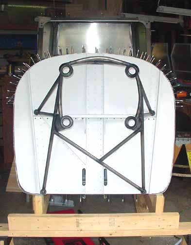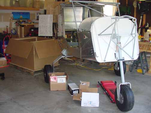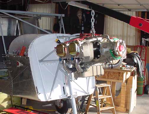 This one fits much better and the framing is a bit stronger. Note how the rear of the engine is mounted slightly off center, to the left (from the pilot's POV.) This is done so that the nose of the prop will still be centered, but the thrust line will provide a slight right turn tendency (from the pilot's POV) to help counteract the natural left turning tendencies of the airplane. September 17, 2002 Picked up the engine today - trip report here.