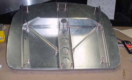 are drilled and cleco'd. Since the pedals and hinges are steel, they