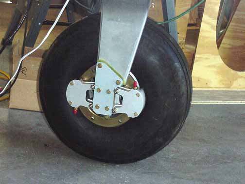 There is very little in the current manual about putting the wheels on, so I took these pictures. After the holes have been drilled in the leg according to the drawing, the bolts are inserted and the axle flange is placed onto the bolts, and then the brake disc and shoes are fitted onto the axle. Then the bolts holding the axle to the leg may be tightened as shown above.